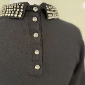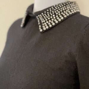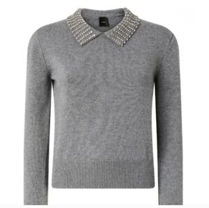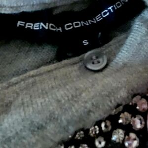 French Connection Gray 100% Wool Beaded Pearl Collar Crewneck Sweater Size Small