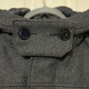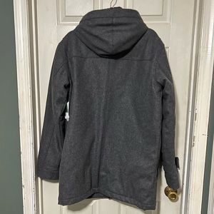 NWT $230 Lifted Research Kingsford Quilted Lined Wool Duffle Coat in Charcoal