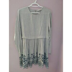 Zara Basic Grey Long Sleeve Tunic Top with Navy Floral Embroidery Size Large