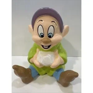 The product is a Dopey Disney Snow White and the Seven Dwarfs dwarf figure coin bank, perfect for home decor or collecting. This officially licensed Disney item features the lovable character Dopey from the beloved Snow White franchise. Made by Disney, this collectible piece is sure to delight fans of the classic tale and add a touch of whimsy to any space. Whether displayed on a shelf or desk, this coin bank is a charming addition to any Disney collection.