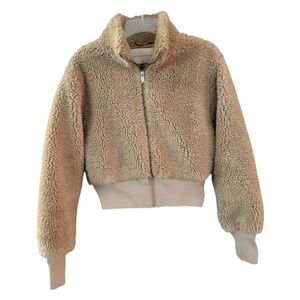 Aritzia Babaton Women's Cropped Sherpa Bomber Jacket in Gold Camel - Size XS