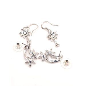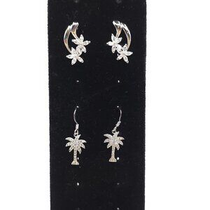 Elevate your jewelry collection with these exquisite nature-inspired earrings. Featuring both floral clip-ons and palm tree drop-style earrings, this set offers versatility and elegance. The rhinestone embellishments provide a sparkling touch, enhancing your outfit effortlessly. Perfect for those who appreciate intricate designs and wish to add a touch of nature's beauty to their accessories.