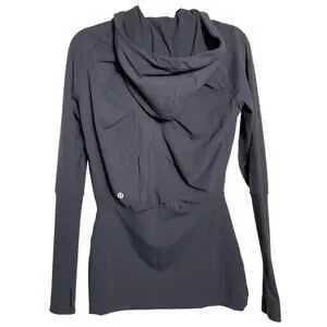 lululemon hoodie, rare lululemon, longline hoodie, activewear zip hoodie, black zip sweatshirt, size 8