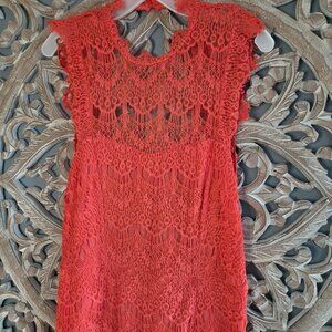 Free People Dress Womans Large Pink Lace Boho Open Back