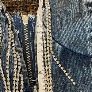 Lulus Strapless Denim Mini Dress Witn Rhinestone Fringe NWT SZ L