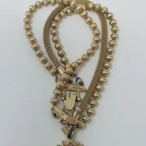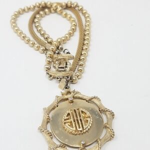 Vtg 1950's CAPRI bracelet signed pendant filigree design mid century gold tone multi strand