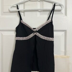 Chic black chemise with white lace trim. Stylish and comfortable. Ideal for a cozy night in.