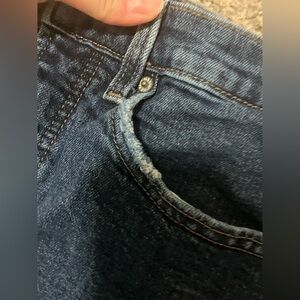 Old Navy Sky Hi Straight Leg Ankle Jean in classic medium blue denim wash. Denim has stretch for comfort, they hold shape very well. Button fly closure. Some fraying on the pockets.