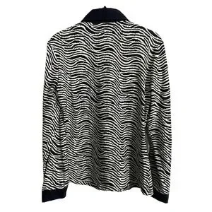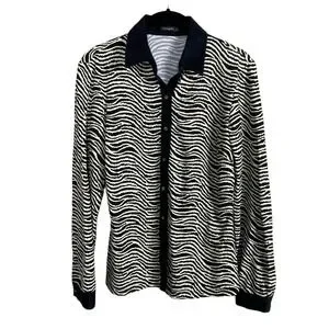 Polished and timeless J.McLaughlin women's top in size Small. Features a wavy black-and-ivory line pattern with a classic collared neckline and long sleeves. Crafted from J.McLaughlin's signature stretch knit for a comfortable, flattering fit that transitions easily from workwear to weekend wear.