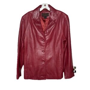 VTG Siena Red Leather Jacket Womens 16 Blazer Lined Soft Genuine Leather Coat