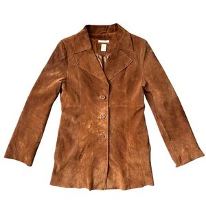 Forever 21 vintage Y2K brown suede leather jacket. Three buttons, fitted style, front pockets and clean lining.