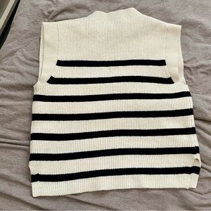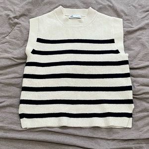 Zara Women's Black and Cream Striped Short Sleeve Top