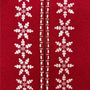 Embrace the season with the Alps red wool cardigan, adorned with a delicate snowflake pattern. Perfect for a cozy, festive look.
