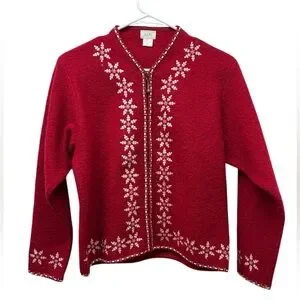 Alps Red Snowflake Women's Wool Cardigan