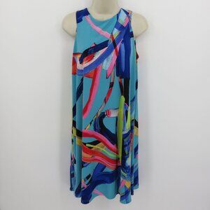 Clara Sunwoo Women Small Blue Multicolor Paint Stroke Sleeveless Sundress Dress