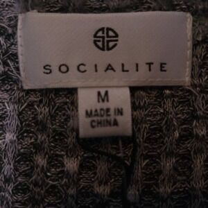 Socialite Womens Pullover Sweater Black Gray Marled Long Sleeve Notch Neck M New