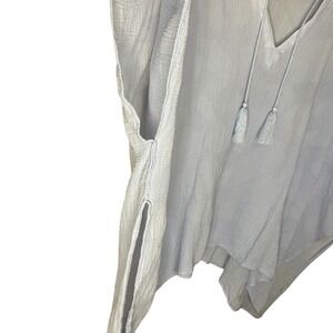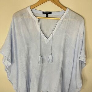 BANANA REPUBLIC Light Blue Gauzy Cotton Poncho Style Tasseled Top
