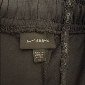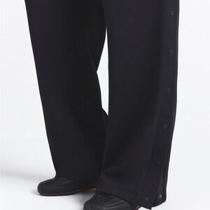 Stylish black track pants from SKIMS. Features side buttons and elastic waistband. Ideal for casual wear.