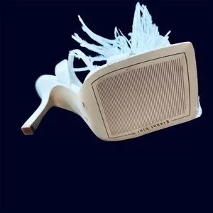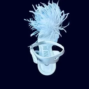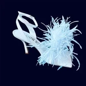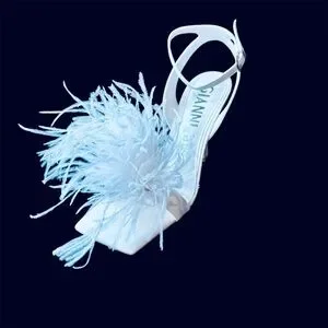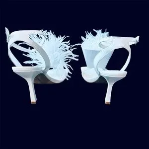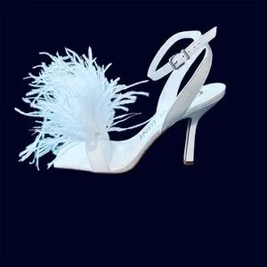 Lovely white leather with fluffy ostrich feathers on toes