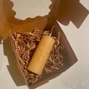 100% pure Beeswax Mini Orthodox Cross Pillar Candle.