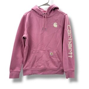 Carhartt Relaxed Fit Hoodie Girls' Medium Pink Logo Pullover Outdoor Casual