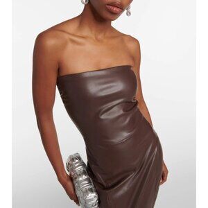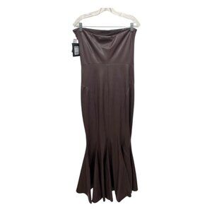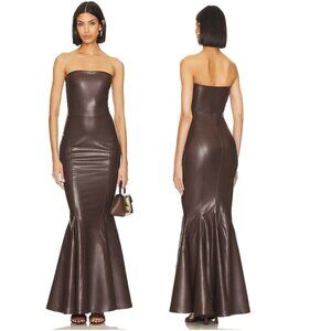 NWT Norma Kamali Strapless Faux Leather Fishtail Gown Chocolate Brown Size L