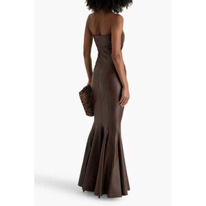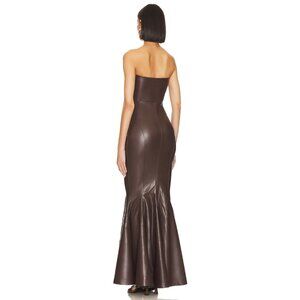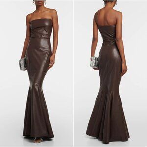 Norma Kamali Strapless Faux Leather Fishtail Gown Chocolate Brown Size L NWT