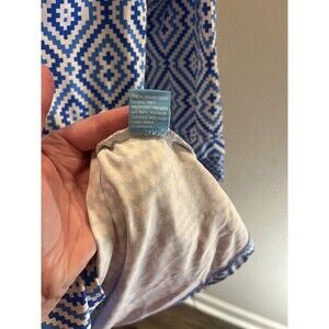The J. McLaughlin Gisel Catalina Nylon 3/4 Sleeve U-Neck Dress in blue is a stylish and comfortable option for women in size large. This trapeze and swing style dress features a flattering U-neckline and short length, making it a versatile piece for various occasions. The 3/4 sleeves add a touch of sophistication, while the nylon material ensures a lightweight and easy-to-wear experience. Perfect for a casual day out or a more dressed-up event, this dress is a must-have addition to any fashion-forward wardrobe.