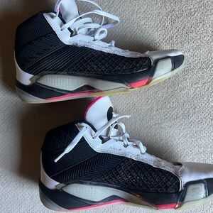 Stylish Jordan athletic shoes. Sleek black and white design. Perfect for sports and casual wear. Only worn in the gym, plenty of tread and life left in them.