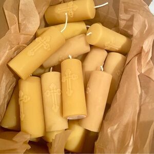100% pure Beeswax Mini Orthodox Cross Pillar Candle.