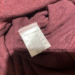H by Bordeaux long sleeve Crewneck sweater in a rich deep burgundy color. Super soft material blend of 69% Rayon/19% Polyester/9% Cotton/3% Spandex with a slight stretch. In very good pre-loved condition.