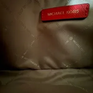 Stylish and bold crossbody bag by Michael Kors. Features a striking coral color. Perfect for adding flair to any outfit. 11 1/2”Lx8”Hx4 1/4”W