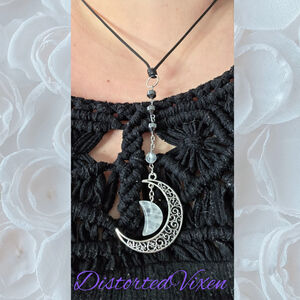 This hand-crafted necklace is a cornerstone of the Distorted Vixen Grounding Line. It features a luminous Clear Quartz Moon pendant—the master healer of the crystal kingdom—chosen for its ability to amplify intuition and clear mental fog.
