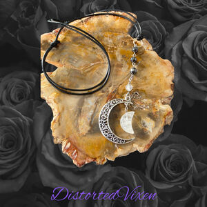 Clarify your vision and ground your spirit. This hand-knotted necklace features a polished Clear Quartz moon pendant paired with our signature Hematite grounding beads. As part of the Distorted Vixen Grounding Line, this piece utilizes Quartz to amplify your intentions and Hematite to provide a permanent shield of stability. A celestial staple for the modern vixen who needs clarity and protection in equal measure.