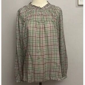 1-22 LOFT green plaid Top Blouse XL
