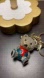 Teddy Bear with earphones Gold tone Keychain with multi color Gemstones 1 1/2”