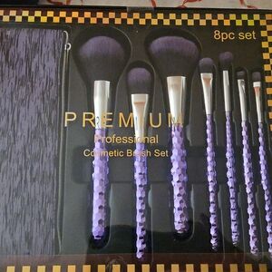 8-piece professional cosmetic brush set in purple. Includes a stylish case.