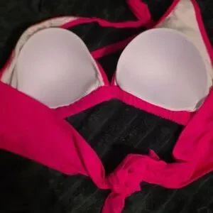 Hot Pink, wire free, lightly lined, low coverage Torrid bikini top with halter ties. Perfect for beach outings.