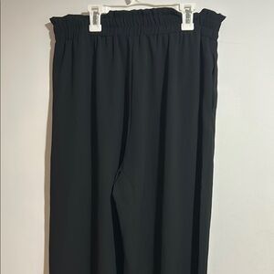Stylish black wide-leg pants with pockets. Perfect for any occasion. Great light weight summer pant, 16 inch waist, inseam 28 inches. 100% polyester. No size on the tag.