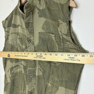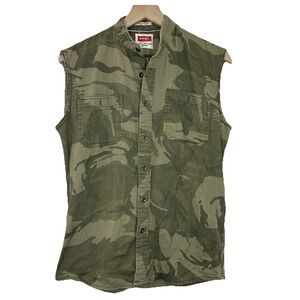 Wrangler Camo Button Up Shirt Small Green Sleeveless Distressed Grunge Punk