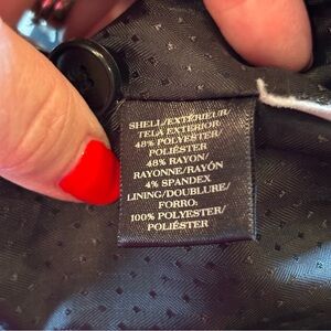 Ann Taylor Classic Black Women's Blazer, size 8, Closet Staple, Lined, One Button Front Closure, Back Vent, Notched Lapel, Two Front Flap Pockets, Button Cuffs, 48% Polyester, 48% Rayon, 4%Spandex, Dry Clean. In Good Pre-Owned Condition, Approximate Measurements in Pictures.