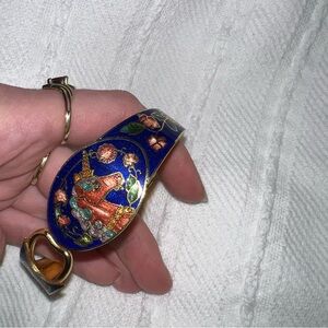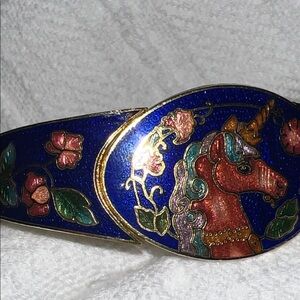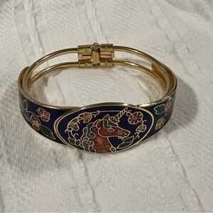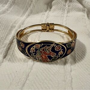 Vintage Cloisonné Unicorn Hinged Bangle Bracelet.