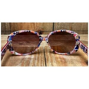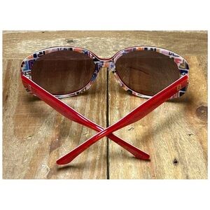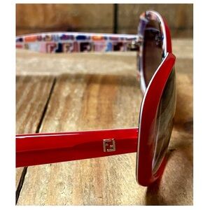 Red Oval Oversized Multicolored Logo Fendi Sunglasses with Black Hard Shell Case.