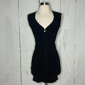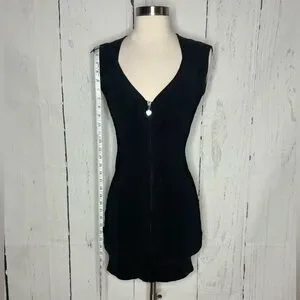 Chic black ribbed knit dress. Features a sleek design. Ideal for versatile styling.