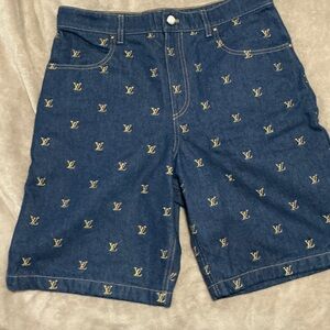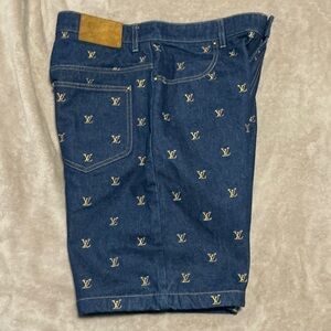 Louis Vuitton Dark Blue Jean Shorts with Gold Accents