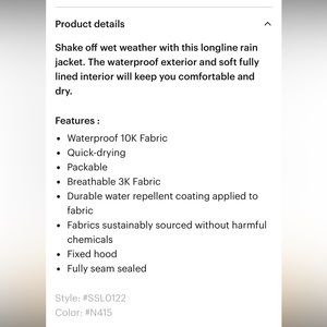 I'm actually super bummed this didn't work for me because I bought it for a work trip where I want to look like a well put together adult. I found this only after searching Poshmark for a couple of hours. The luluLemon raincoats look bulky and sporty. Trench coats are almost never actually waterproof, have an unnecessary amount of flaps, buttons, and pockets. Rains brand coats look like artful tarp ponchos. Also, can we discuss how giant the arms are in most rain coats? Not this one, beautifully tapered and don't drag across the table/desk when reaching for my coffee cup.