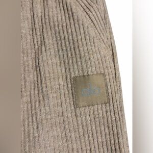 Alo Muse Ribbed Joggers Gravel Tan. Purchased on here, listed as a medium but run more like a small. Size tag was missing so go by measurements-laying flat-Waist: 14”, Inseam:29.5”.