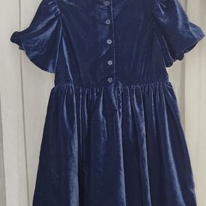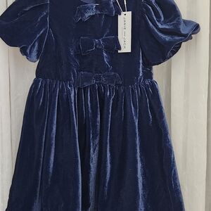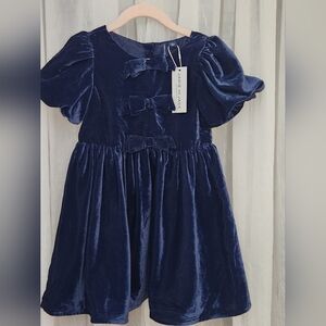 Janie and Jack Navy Blue Velvet Girl's Dress w/ Bubble Short Sleeve, Size 4,NWT