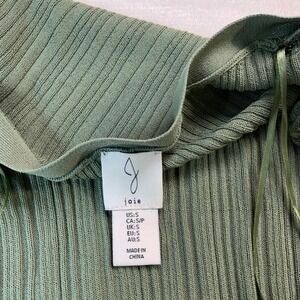 Joie Ribbed Knit Long Open Front Cardigan Sweater Green Womens Small Stretch