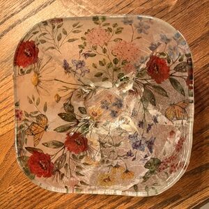 Floral Glass Makeup Bowl Organizer with Red and Green Accents